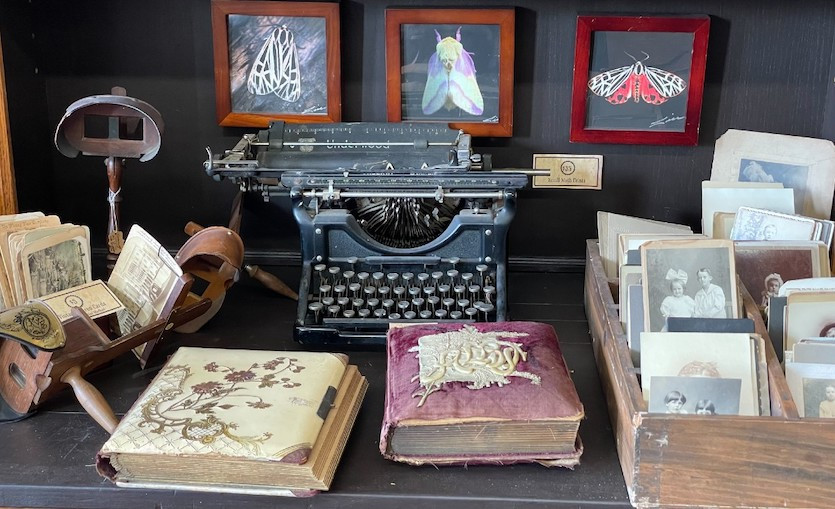At her studio and shop, Lill does vintage portraits for people who want to travel back in time and try on vintage clothing she's collected. But if dressing up isn't your cup of tea, there are plenty of other options to spark your creative interest here, many that reflect Lill’s passion for Steampunk and Victorian collectibles: old typewriters, vintage post cards, papier mache globes, mid-century cigar boxes, embossed apothecary bottles, out-of-print books, and antique candlestick holders. And if you're really looking for adventure, there is a penny-farthing replica that will turn heads no matter where you place it.