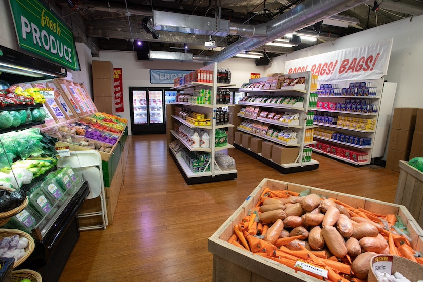 I should clarify: Visitors are ticket holders. After 10 minutes of browsing the store’s inventory, a pleasant intercom voice announces the start of the performance and apron-wearing museum staff roll away shelves and Gaylord boxes, unfold the produce display, and transform the store into a theater.