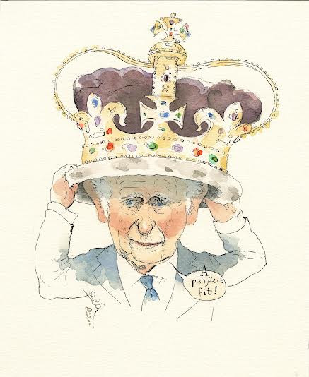 Blitt says he did get a kick out of drawing King Charles around the time of the coronation. Blitt depicted the king as tiny, outsized by his finery. He wanted to capture the absurdity of the archaic pomp.