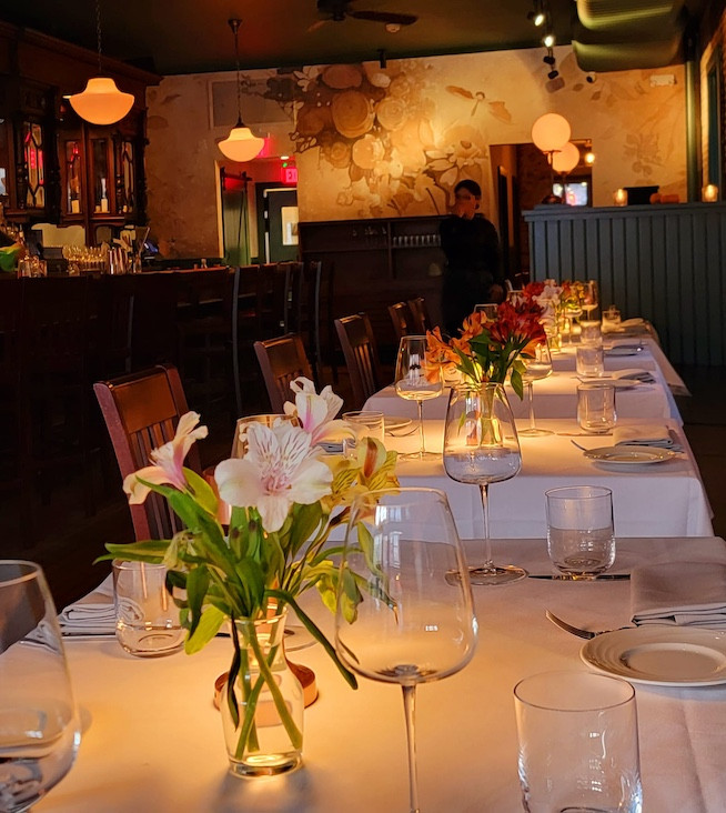 The good news is that The Elm provided a convivial and comfortable dining experience, one that left us relaxed, happy, well-fed, and looking forward to returning with the crowds. Since its opening in 2022, friends have urged me to try it for what some called a “more adult” night out than they were accustomed to at other Great Barrington restaurants – for example, one pointed out, you won’t find a hamburger option listed on the dinner menu. “Refined by not fussy,” was another description, and even given the dearth of fellow diners on the night we ate there, that vibe came through.