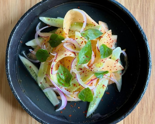 Shaved cantaloupe with cucumber, Thai basil and nuoc cham