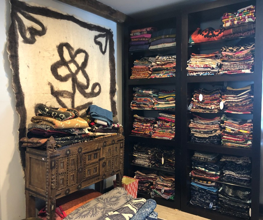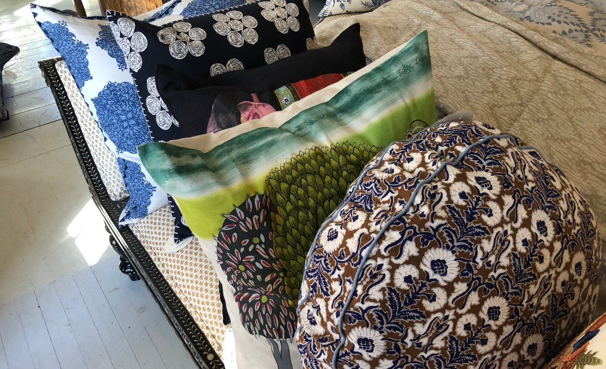 Now a leading textile designer, Robshaw’s signature style is woven into an ever-changing collection of home goods that have been featured in all the shelter mags. Recently, he moved his showroom to our neck of the woods, bringing the color, texture, and techniques of the southeast Asian decorative arts to Falls Village, Connecticut. The John Robshaw Shop is housed in a traditional farmhouse at the crossroads of Routes 7 and 126. Say goodbye to New England at the door, though, because inside you’re transported into a universe of swirly prints, paisleys, medallions and other rhythmic patterns; bedding and tabletop textiles with hand-stitched edging and embroidery; vintage treasures; and antique and upholstered furniture that put you in another world. If you like color and texture — and value craftsmanship —this is your nirvana.