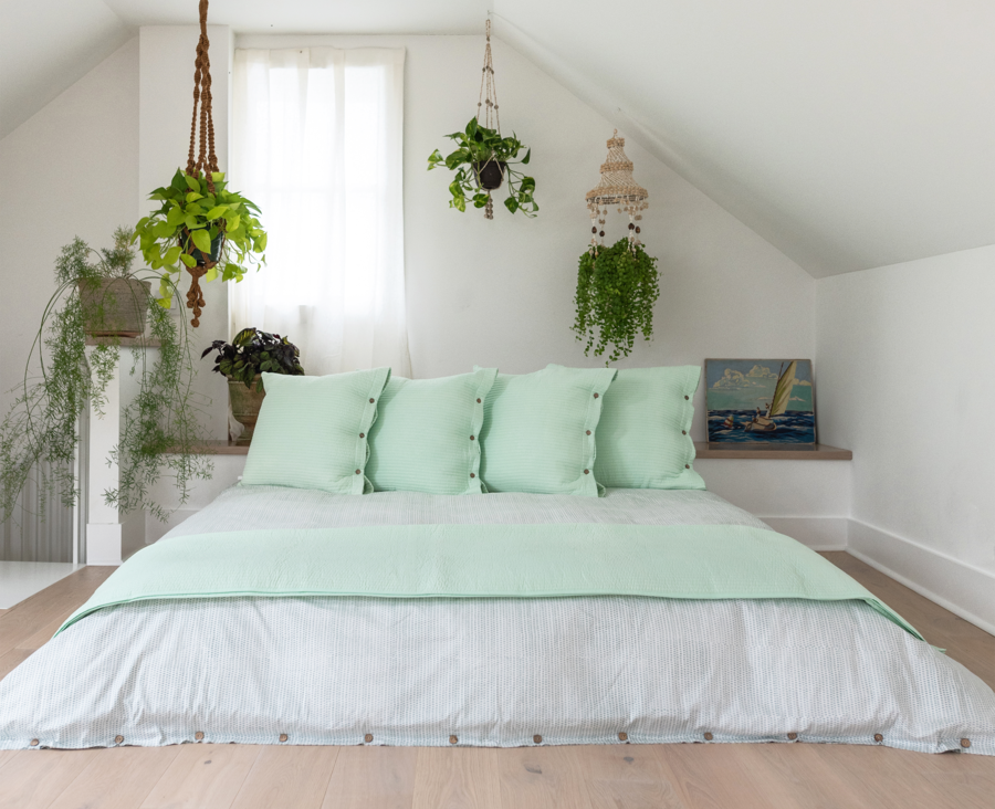 The company had been gestating for quite a while. Both Sheffer, who studied fashion design in Florence and worked in New York and California, and Carroll came back to the Berkshires to start their families. They began talking with their mother about starting a bedding company, and immediately knew their mission was to make it as sustainable as possible. That was just part of the way they grew up.