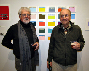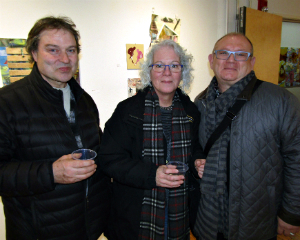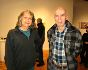 Sharon and Ed Carson, who call the Eclipse Mill home, stopped by to support their fellow artists; Bill and Francie Riley, artists and owners of the Real Eyes Gallery on Park Street in Adams, Mass., pose with artist Arthur De Bow.