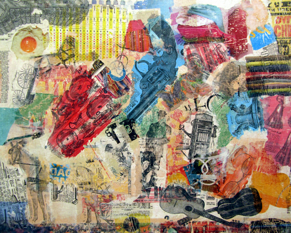 Amy Krzanik reports from North Adams.100 Hours in the Woodshed, a collage marathon and exhibition co-founded by local artist Danny O, celebrated its fifth year when it kicked off with a reception on Thursday, Jan. 26. The marathon itself followed, beginning at 6 p.m. and lasting 100 hours (hence the name) until Tuesday, Jan. 30 at 10 p.m. During that time, the artists shown below (along with fellow creators Suzi Banks Baum, Gwendolyn Bird, Kathline Carr, Valerie Carrigan, Misa Chappell, Peter Dudek, EkkaLyra, Lilianna Espanola, Laurie Goddard, Victoria Jefferies, David Lachman, Michael McKinley, Mark Mulherrin, Jim Peters, Rich Remsberg, Anne Roecklein and Ann Scott) worked their cut-and-paste magic downtown at The Makers’ Mill and at the Eclipse Mill Artist Lofts, where the opening reception was held on Thursday, Feb. 2. During the marathon, those interested in art could stop by either venue and watch the different ways artists went about the process of creating. See the finished products for yourself at the Eclipse Mill Gallery from now until Feb. 26.