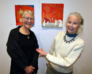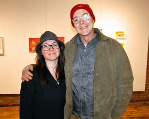 William Archer, an artist in the show, with Silas Sima, an artist from Belfast, Maine; Melanie Mowinski, whose work is seen below, with fellow Woodshed contributor Michelle Daly and her mother, Peg Daly.