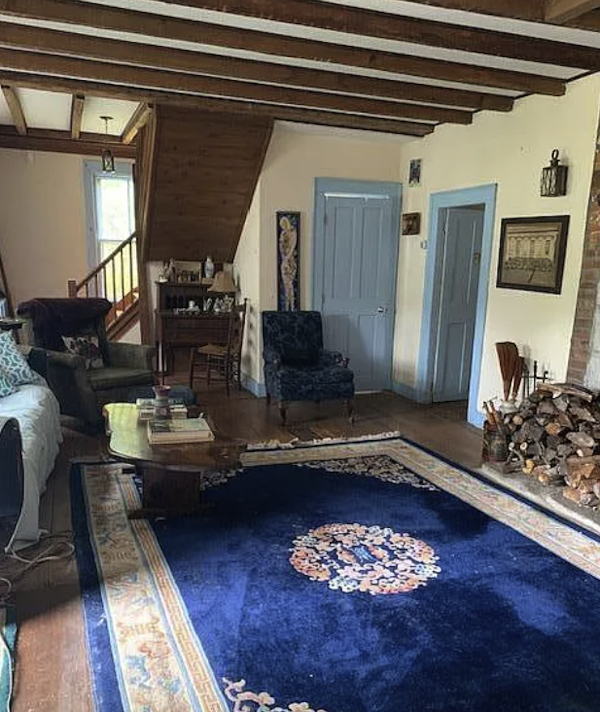 At the center of the property stands the main residence, a rustic example to late 18th-century architecture. Built around 1789, this historic home features five bedrooms and two bathrooms spread across 12,225 square feet. The interior boasts original wood flooring and multiple fireplaces. Accompanying the main house are well-preserved barns from the 19th century.