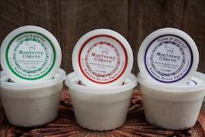 1.) The cheese. Glorious, creamy, fresh, locally-sourced cheese comes out of Rawson Brook Farm. Appropriately named Monterey Chevre, the cheese comes in three varieties: plain, chives and garlic, and thyme and oil. Owner Susan Sellew pasteurizes the milk from her goats, makes the cheese by hand, then ladles it into cheesecloth to hang and incubate. The entire small-batch process is aided by the fresh goat's milk, courtesy of healthy Monterey goats.