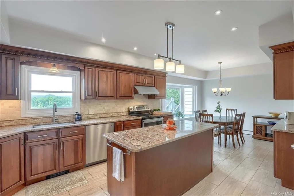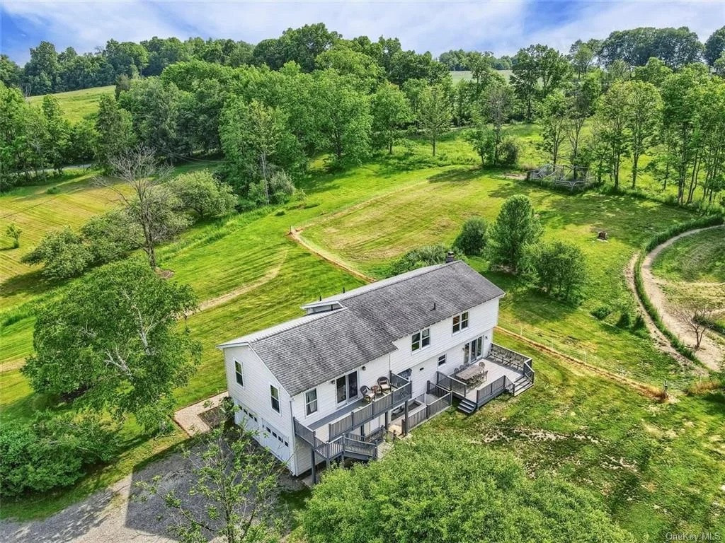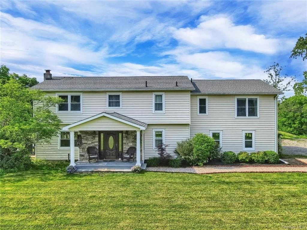 A renovated Colonial on 15 acres in Stanfordville is set back far enough to offer lots of peace and prviacy (and perhaps horses or farming). The 3,716-square-foot home offers four oversized bedrooms and four full baths, plus a gourmet kitchen and two rear decks overlooking a private pond. The pole barn supplies plenty of additional space. Listed at $850,000 by Shahar Management.