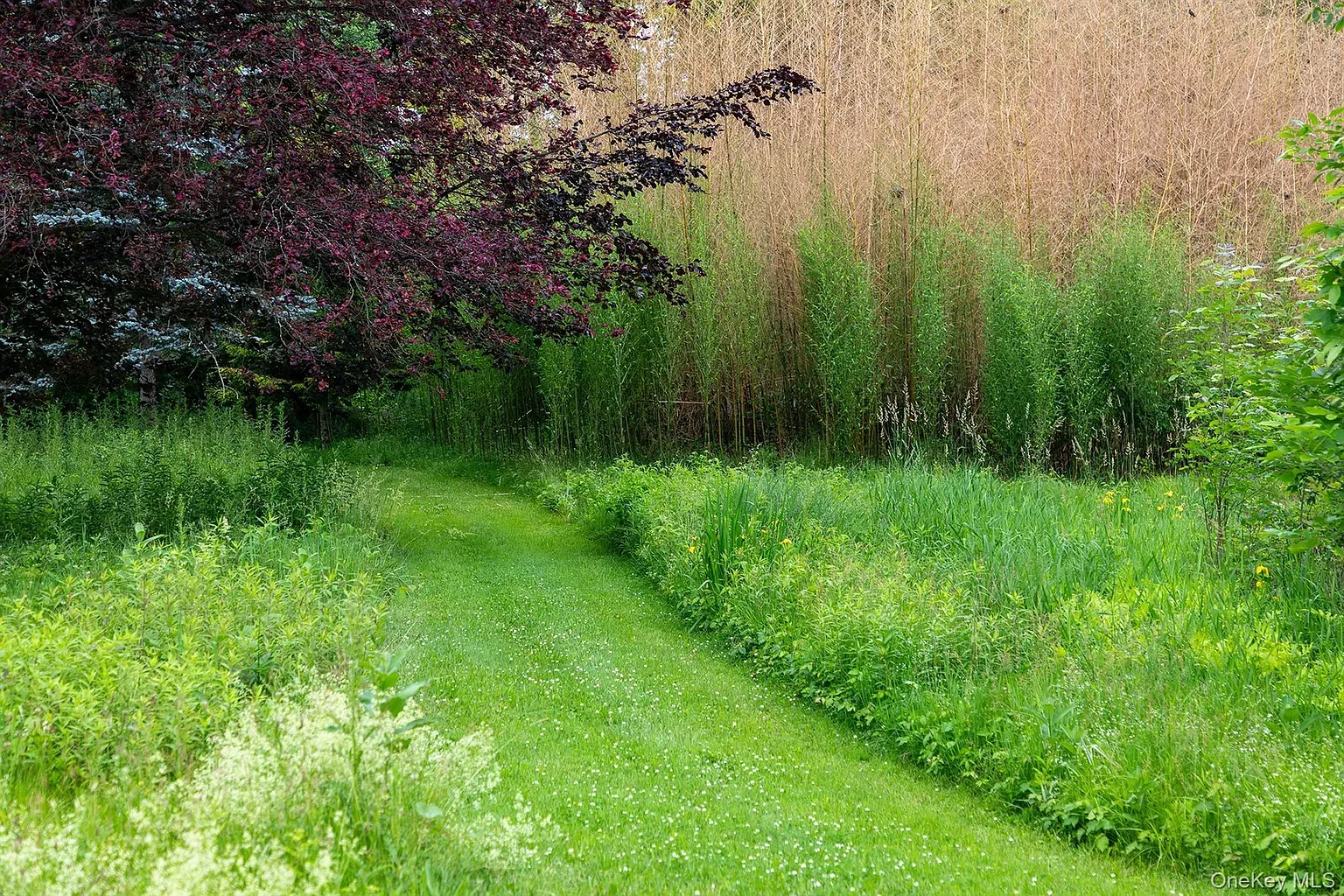 Open lawn transitions into cultivated garden areas and then into woodland edges, creating a sequence of spaces suited to gardening, outdoor meals, or simply quiet walks. Despite its rural setting, the property remains within a few minutes reach of Germantown, Tivoli, and Hudson.