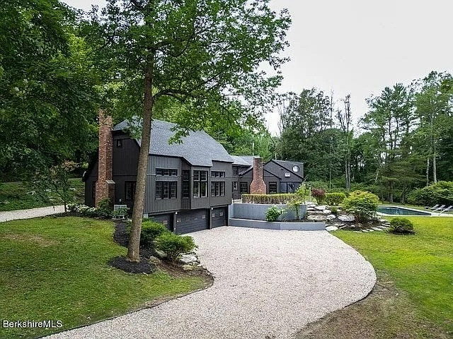 The outdoor spaces are equally captivating, with mountain views, a spring-fed pond, a fountain, and a swimming pool, creating a serene retreat. A four-car garage provides ample storage, making the property ideal for full-time residence or weekend getaways. Listed at $2,649,000 by Suzann Ward, Housatonic Real Estate.