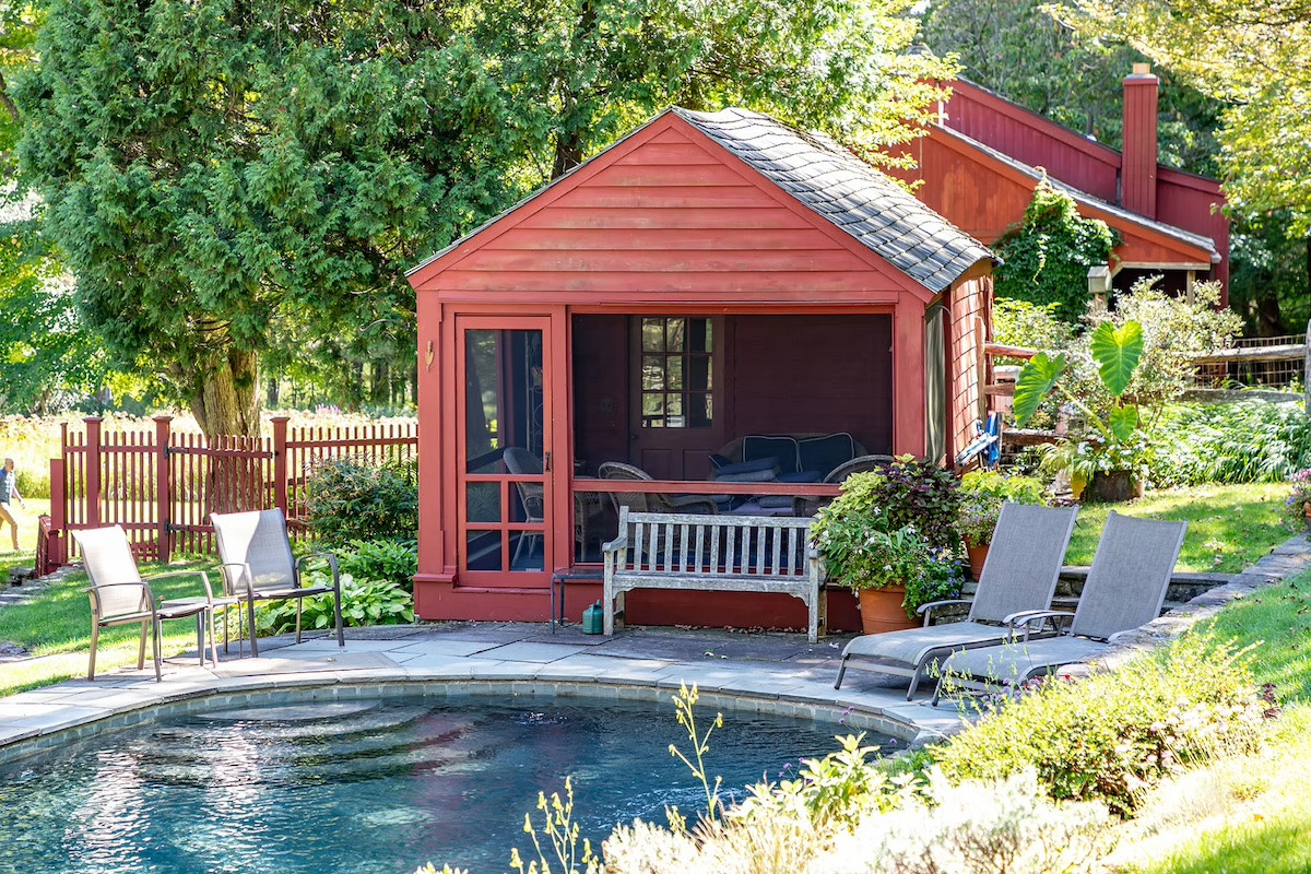 History and modern updates converge in this South Kent Colonial built in 1800. There are three bedrooms and three bathrooms, a recently renovated kitchen, living room with fireplace and built-in bookcases, a den and outdoor patio. The pool and pool house are nestled amid lush gardens, and the property includes the backdrop of trees. The barn has served as a home office but could be a studio or guest house. Listed at $998,000 by William Pott Sotheby's International Realty.