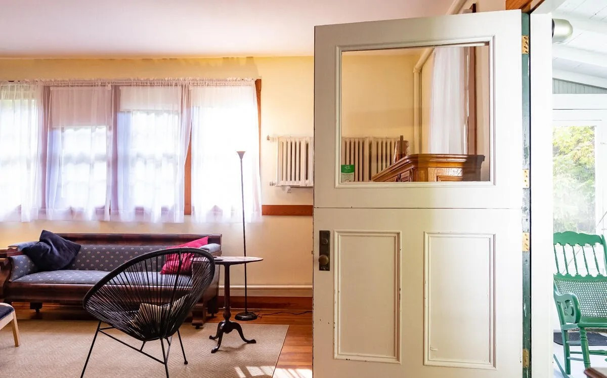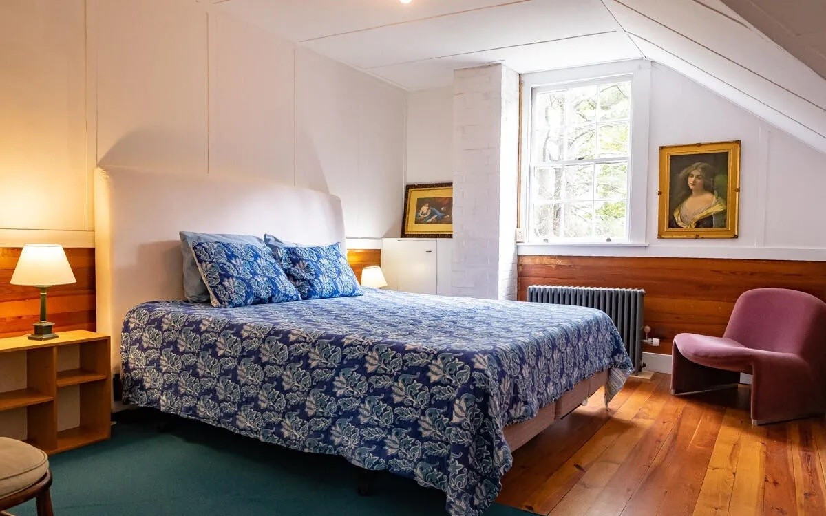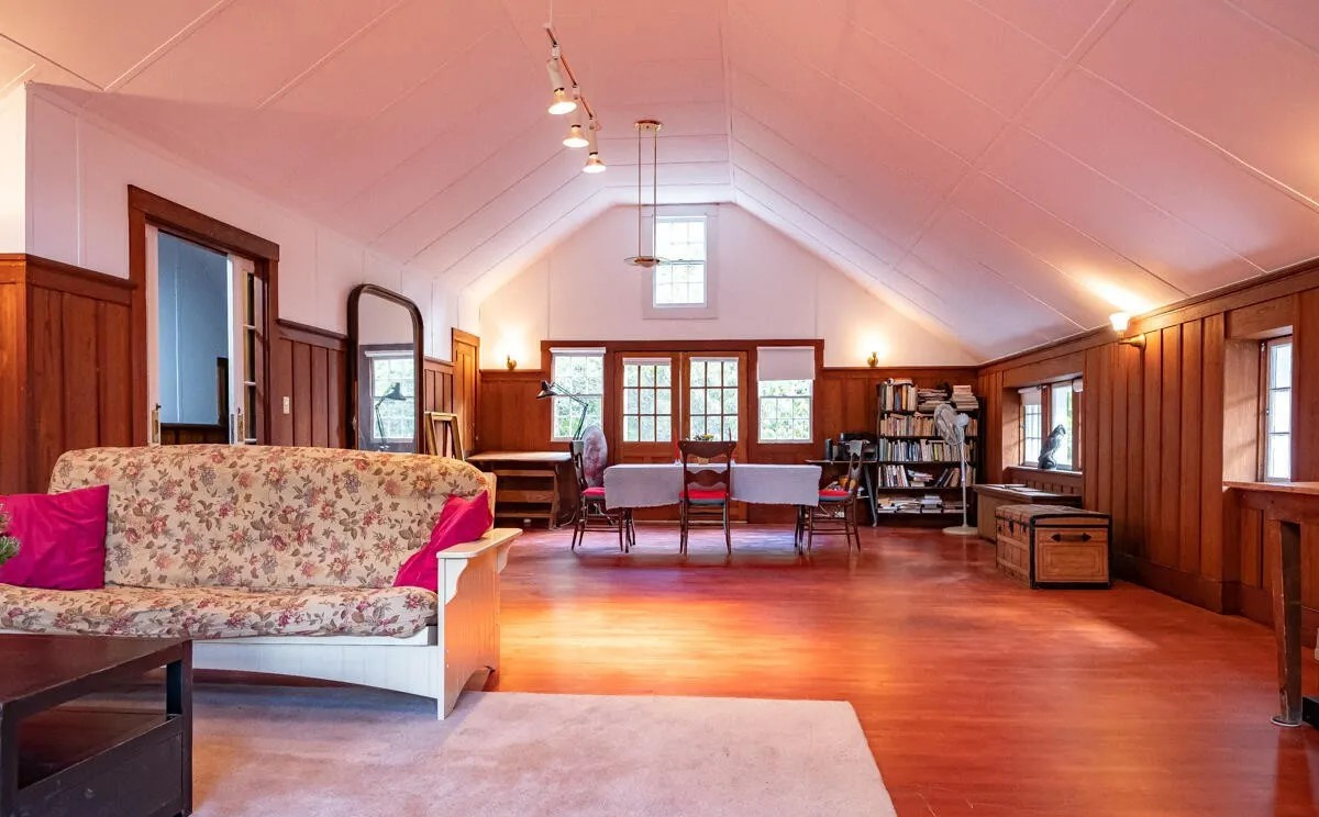 The 1910 livery and carriage house sited on ten acres in Sheffield was converted to a residence, and retains significant original detail: wood-paneled walls, beamed ceilings. There are four bedrooms and two bathrooms. The updated second floor includes three of the bedrooms and a large studio. The land includes acres of open meadow and an apple orchard. Listed at $1,499,000 by Elyse Harney Real Estate.