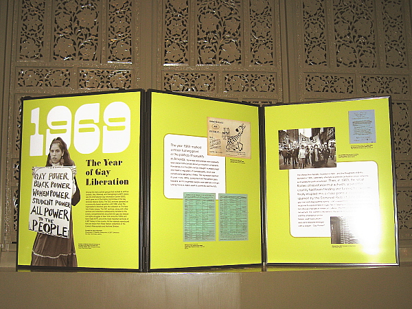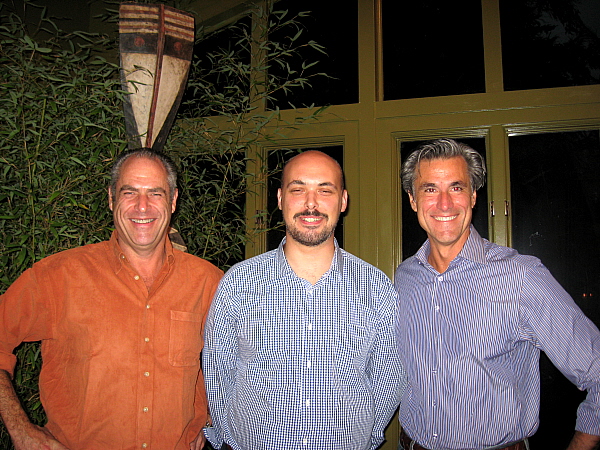 Guest of honor Jason Baumann (center), coordinator of the Lesbian, Gay, Bi-sexual, and Transgender Collections at the New York Public Library with the evening's hosts Carey Maloney and Hermes Mallea