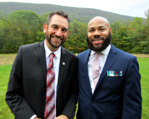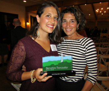 Amy Krzanik reports from Williamstown. More than 300 community members — from bankers, builders and politicians, to artists, educators and medical professionals — found their way to the new Bloom Meadows event space on Thursday evening, Sept. 14. 1Berkshire, the region’s economic development organization, had invited them there to once again "Celebrate the Berkshires." The annual event recognizes individuals and organizations who strengthen the local economy and help the Berkshires grow. The 2017 Berkshire Trendsetter winners were announced and are as follows: Comprehensive Marketing Campaign – Shakespeare & Company; Entrepreneur/Visionary of the Year – Tad Ames of Berkshire Natural Resources Council; Growing/Advancing the Berkshire Economy – Allegrone; Under 40 Change Maker – Jessica Vecchia [shown left with her mother, Patti Bilodeau]; Nonprofit Impact – McCann Technical High School; Creative Economy Standout – Jacob’s Pillow Dance Festival; and Newcomer of the Year – Adam Hinds. The award for Putting the Berkshires on the Map, whose winners were the only ones previously announced, was presented to the Community of North Adams. And what a community it is. MASS MoCA’s Executive Director Joe Thompson perhaps said it best when he introduced the recipients. “Not to diminish the natural beauty and history of North Adams,” he said, “but the people are our greatest assets.”