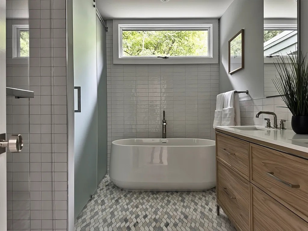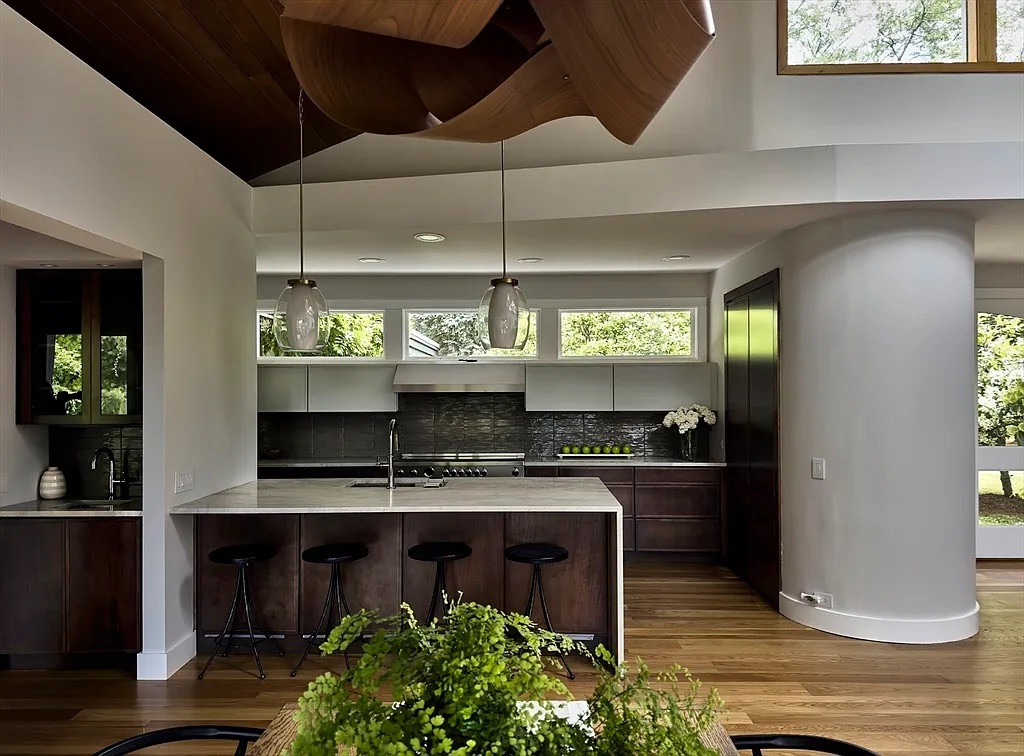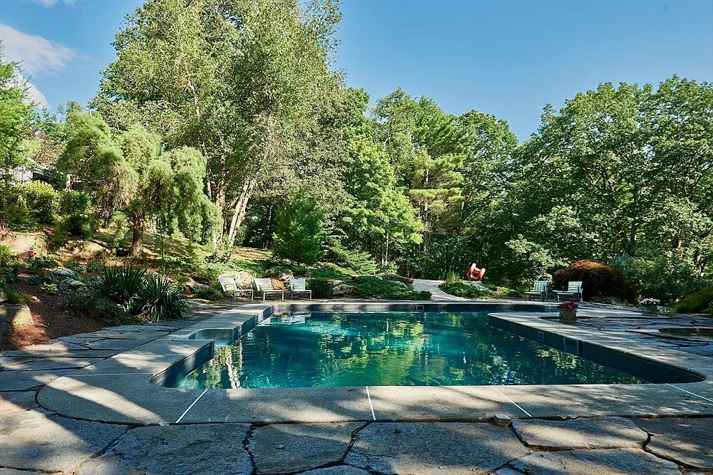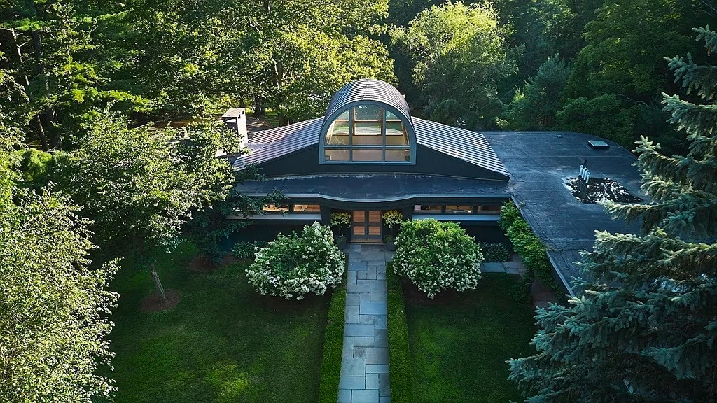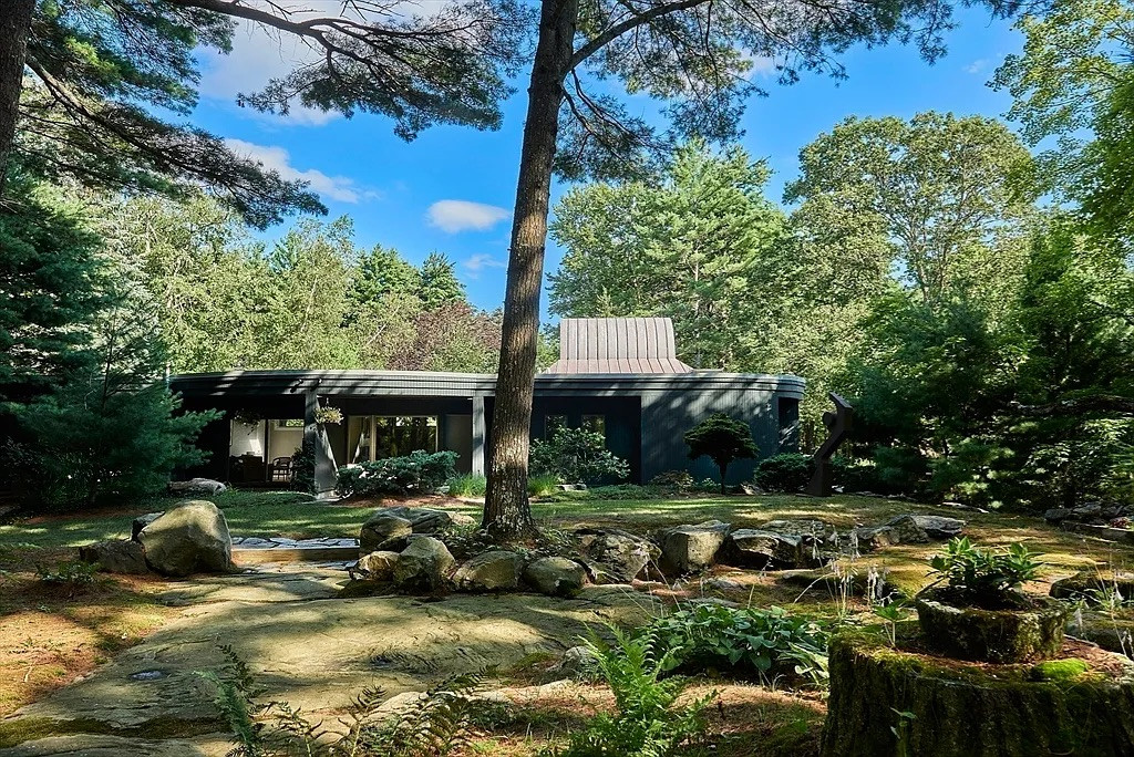 It’s not common to see a large 1980s contemporary home in the Berkshires, but here we are at 1333 Norfolk Road in Southfield/New Marlboro. Renovated in 2025 and sitting on 11 acres, it’s got a main house, guest house, and pool house, plus a pond, heirloom stone walls, and lawns that run up to newer masonry work completed by local craftspeople.