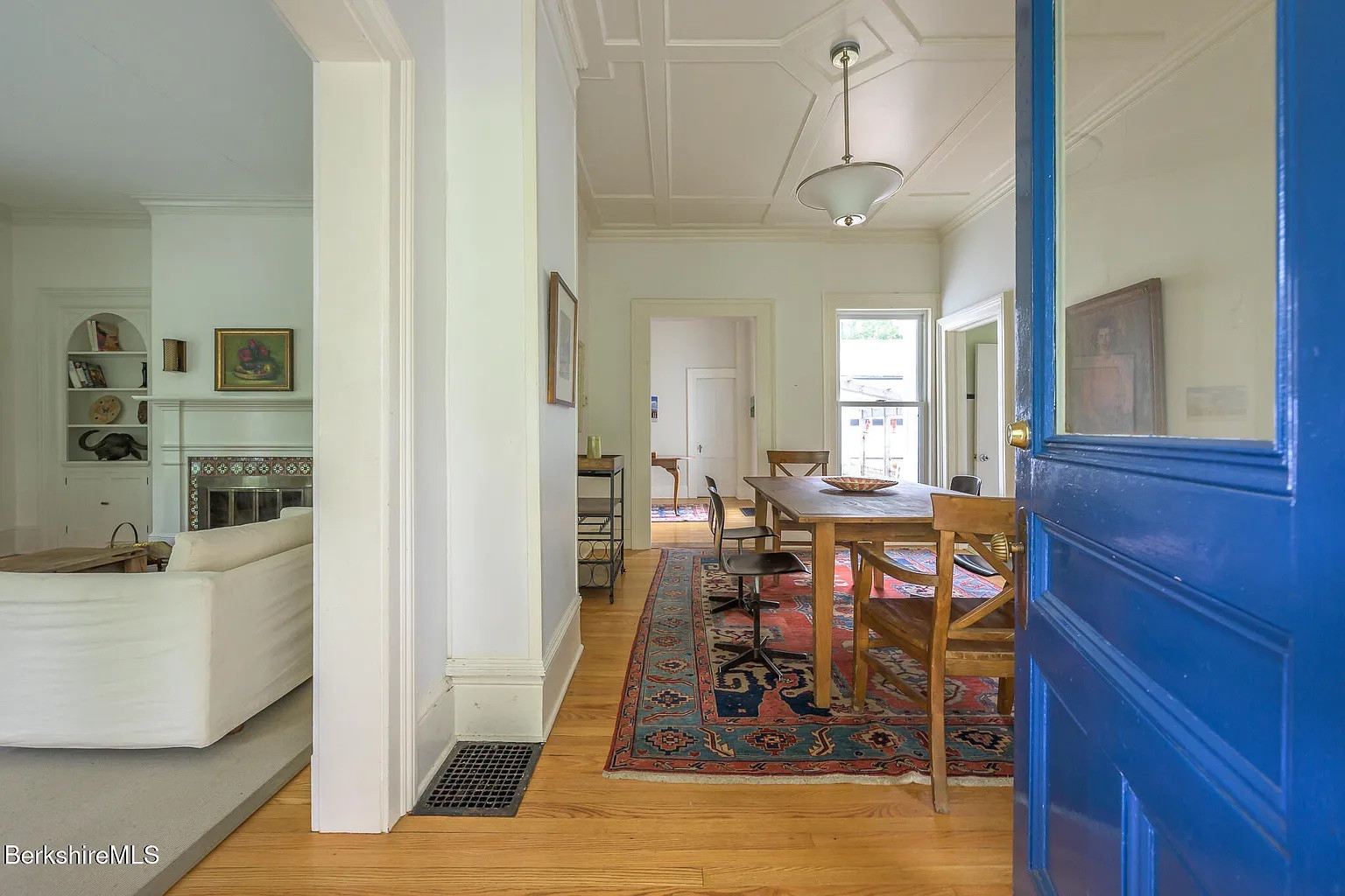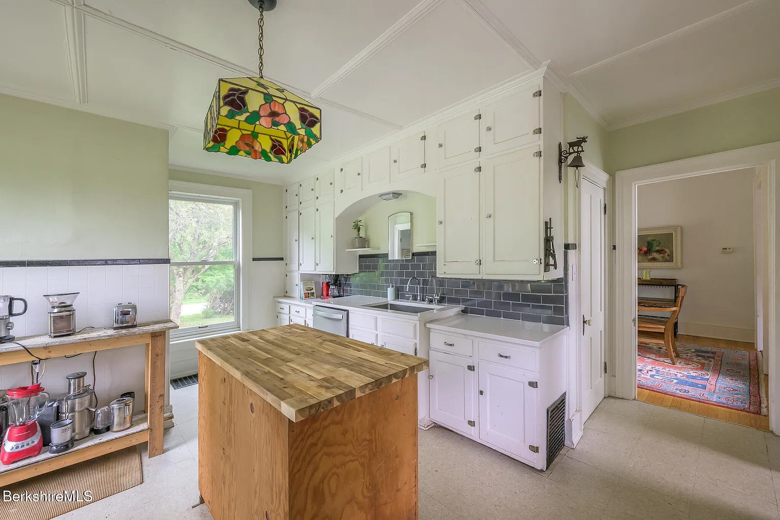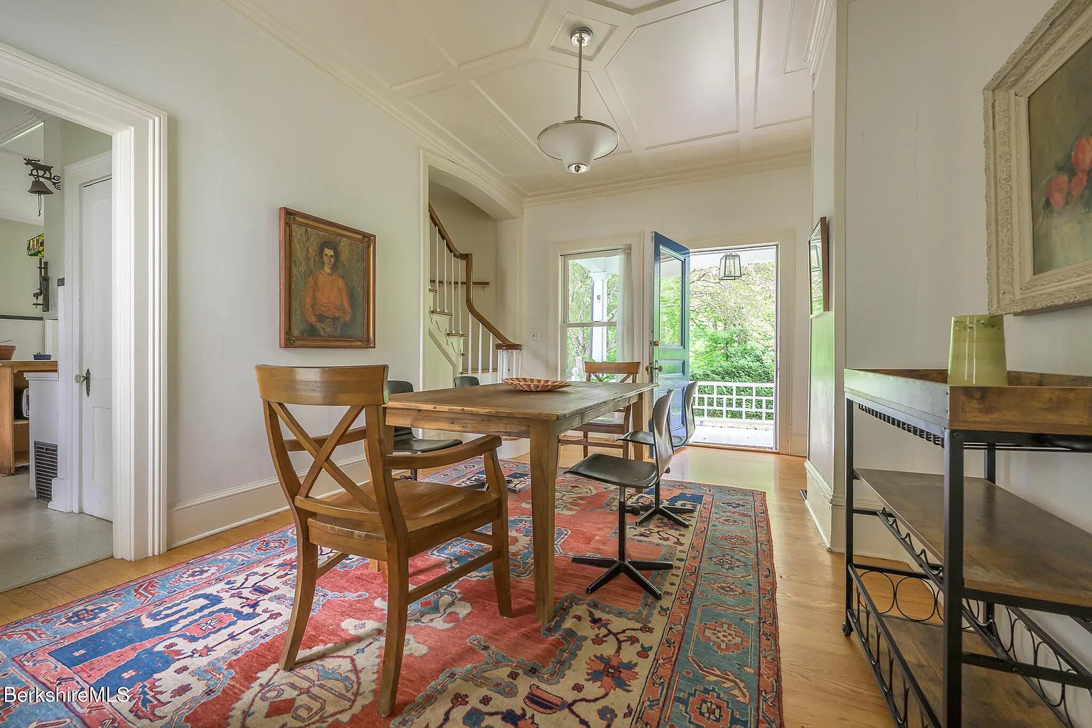 Set on 3.5 acres, it has 3,248 square feet and was built in 1800. The five-bedroom, four-bathroom home (including two full and two half baths) was previously configured as a two-family and still retains two kitchens, two dining rooms, and two living rooms. It can be used as-is or converted back into a large solo estate.
