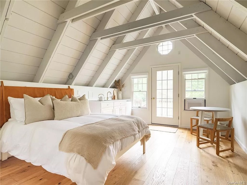 The upstairs suite of this A-frame chalet in Dover Plains can function as a separate rental unit.