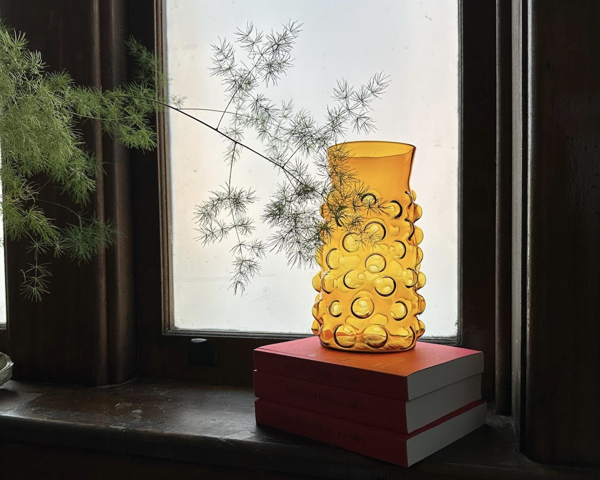 Bowring ended up buying a glass-melting furnace from them with which he now creates his beautiful, sometimes whimsical, and always boldly colored glassware—informed by his background as an abstract painter. “It’s kind of like a dance to try and harmonize the right colors together, with the underlying theme of it all just being fun,” he says. His business, Bow Glass Works, can be visited by appointment only. Bowring will soon be offering classes as well.