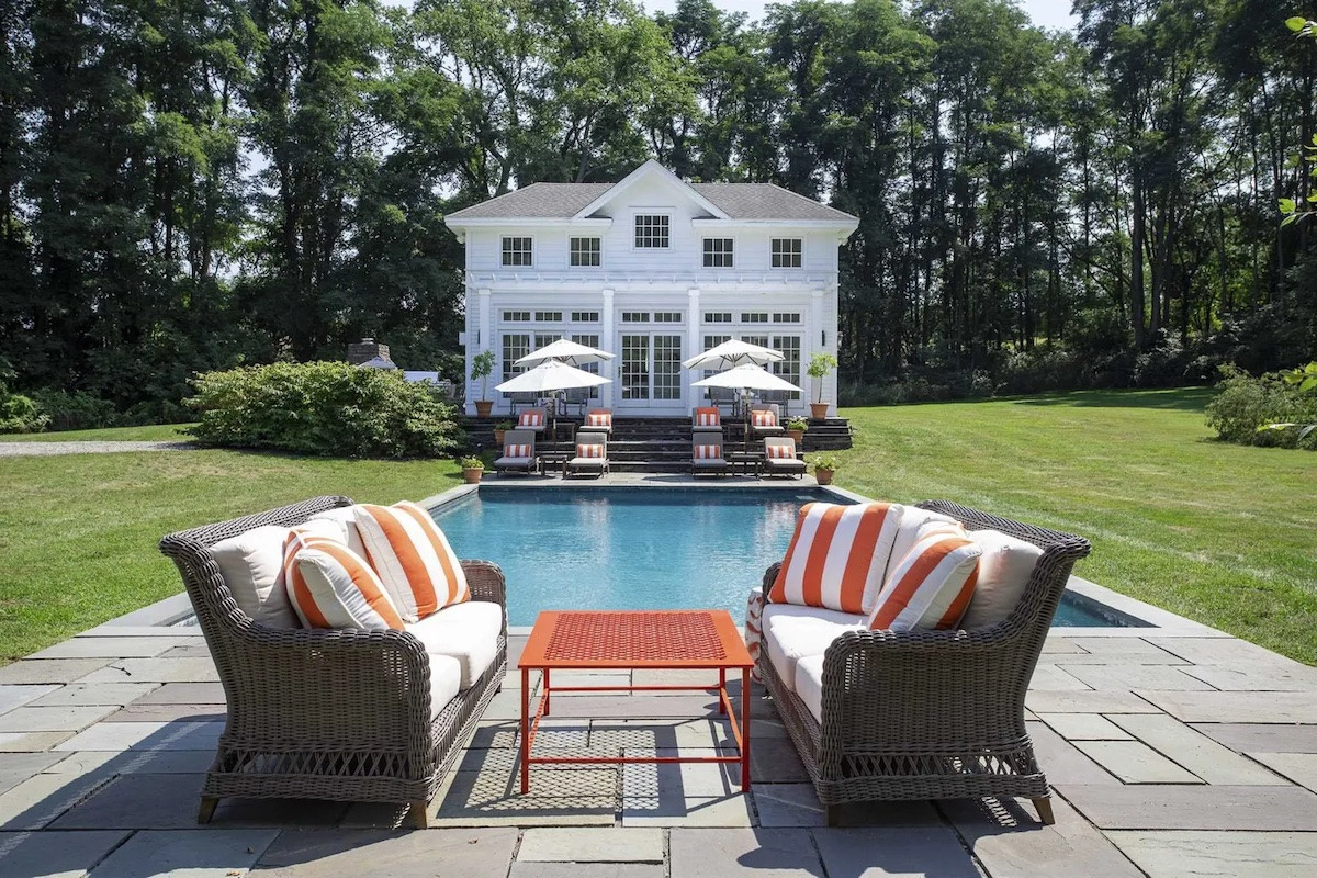In Millbrook, En Route was built in 1930 but its original details blend seamlessly with both stylistic and functional updates. It offers three bedrooms and four bathrooms, a chef's kitchen, family room and living room with two wood-burning fireplaces. The lacquered library with a gold ceiling features custom bookshelves opening to a hidden home office. The two-car garage offers options for an upstairs apartment. A pool house overlooks an oversized gunite pool. Listed at $1,950,000 by Compass.