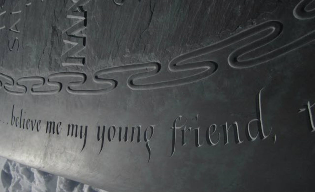 In addition to his work with memorial projects, Heller has also, quite literally, made monuments. Not the least of which were collaborative works with text artist Jenny Holzer. In 2012, Holzer Studio asked Heller for help “realizing a series of small limestone tables” Holzer had designed for a commission by the Whitney Museum of American Art (in NYC). A few years later, again with Holzer, Heller found himself working in Ibiza, Spain, on a site-specific, outdoor commission for art collector Guy Laliberté. Heller spent nearly two months there, chiseling selected poetry (in the classic Roman styling) on strategically chosen cliffs and boulders.