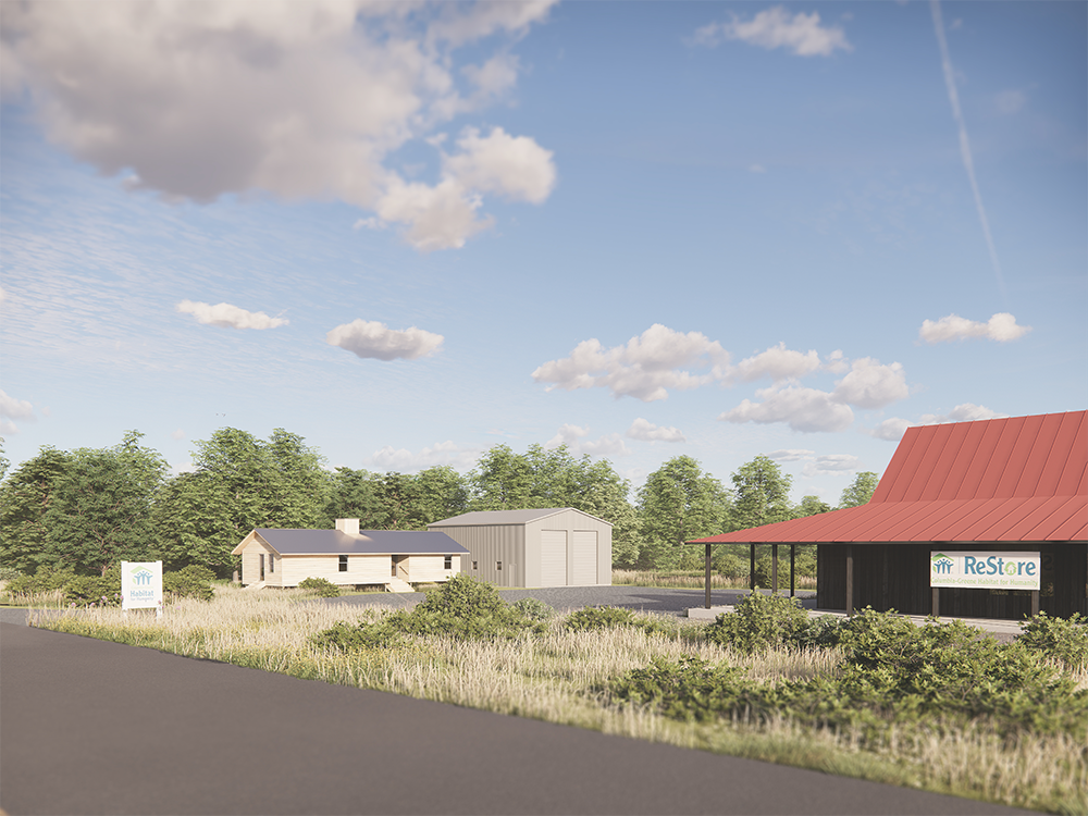 CGHFH is currently constructing two new buildings on the property. The first is a model home, a four-bedroom, two-bath starter home that will double as the organization's administrative offices. It's a working example of what Habitat actually builds, available for potential homeowner families, donors, and community members to walk through and see the quality up close. The second is a metal building that will house a light-duty construction shop that Bellenchia says will make the organization faster and more efficient.