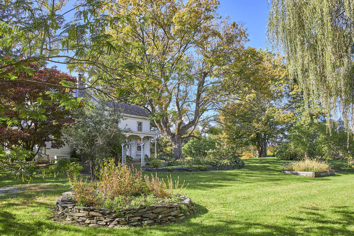 Built in 1880, this spacious Germantown farmhouse has four bedrooms and two bathrooms. A large kitchen, pantry hall and wood-burning fireplace are joined by a library/office and media room. The entire house has old-board floors. The acreage features open lawns with specimen trees, lilacs and perennial garden plantings. Listed at $685,000 by Rouse + Co. Real Estate.