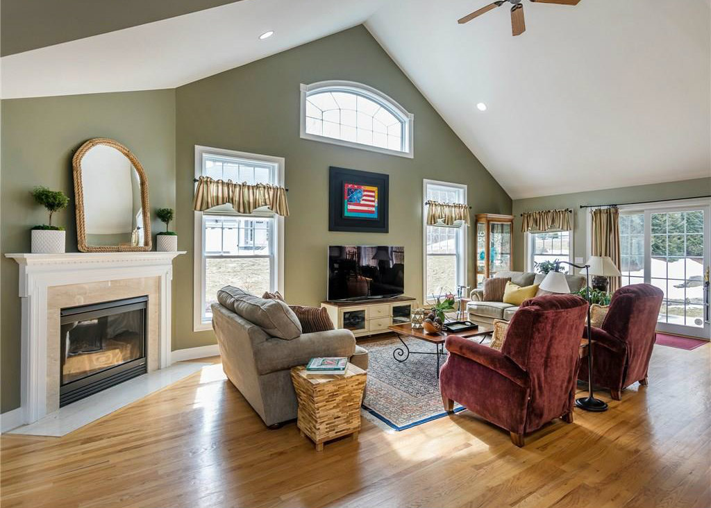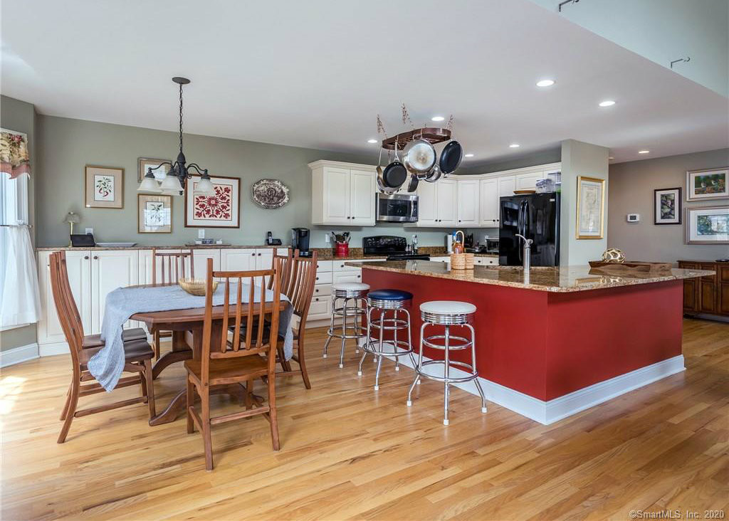 In the New Milford Park Glen adult community, this unit has two bedrooms and two bathrooms. The 4,423-square-foot open layout includes a formal dining room, main floor master with a walk-in closet, an open loft area for an office, and laundry room on the main floor. The community offers meandering driveways, landscaping and large open spaces that abut 20 acres of land trust. Listed at $425,000 by The Matthews Group.