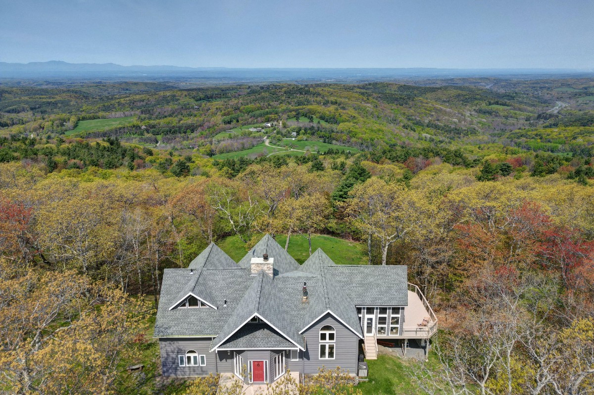 A Contemporary in East Chatham offers views of the Catskill Mountains, Hudson River and rolling hills.