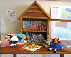 Norah Bresnahan, John Bresnahan and Casey DiCicco; one of the beautiful book houses that have gone up throughout the county.