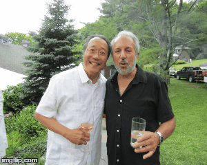 IS183 board chairman Andy Foster with the guest of honor, and the school's executive director Hope Sullivan; the animated Yo-Yo Ma with Stonover Farm co-owner Tom Werman.