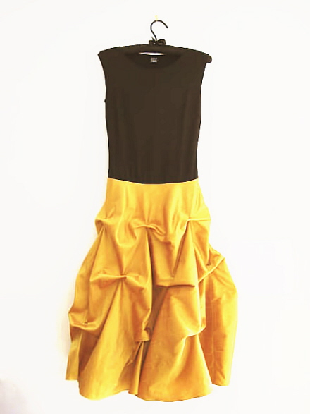 Her clothes are also versatile. This reversible silk duppioni, pleated, one-size-fits-most, wrap-skirt, for example, is suitable for day or evening, summer or winter. The black details and big bow (left) suggest evening, perhaps paired with a black camisole in summer or black tights and a sweater in winter. Reverse it, tie the belt more simply (right) or wind-and-tuck it cummerbund-style, and you've got a leg up on a summer look that works day or night. "You don't want a piece where's there's nothing you can put with it," she says. "That's deadly." Silk wrap skirt, $265. Walwyn-Jones is also a judicious proponent of color. "The no-color thing is sort of lazy," she says of the sea of black, brown and gray one is likely to encounter in any nearby roomful of people, especially at this time of year. "I'm not saying I'm not guilty of it, but especially in this physical and fiscal climate, it's important to look cheery, On the other hand, too much color can be overwhelming, like a too-rich meal."