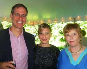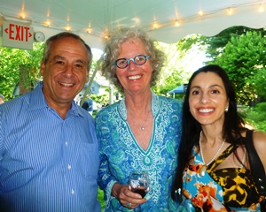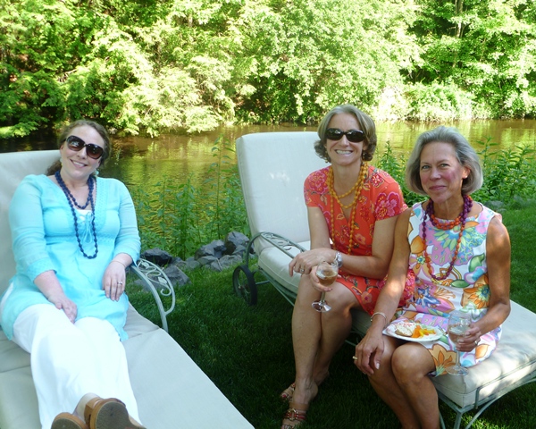 Sarah Todd reports from Woodbury.Do river nymphs live in Woodbury? The idyllic landscape at the Pomperaug River Watershed Coalition's annual Evening by the River benefit on Saturday, June 15, made their presence seem likely. Guests in flowered shifts and crisp jackets sipped white wine while lounging by the river and nibbled bacon-wrapped scallops beneath trellises lush with vines. The evening's guest of honor, NPR's Faith Middleton (left, flanked by the Connecticut Summer Opera Foundation's Vincent Deluise and Maria Jablon), was on hand to host the event, which was sponsored by Mill House Antiques. A live auction featured prizes like a night's stay and dinner for two at the Mayflower Inn, a stay at a Hilton Head villa, and a gourmet dinner prepared by Good News Cafe's Carole Peck.