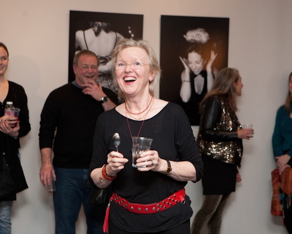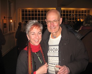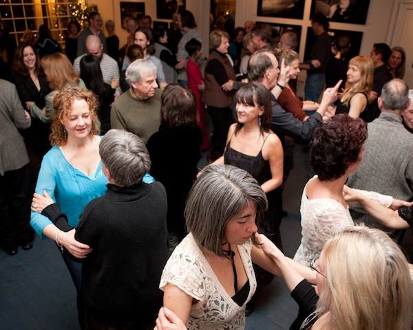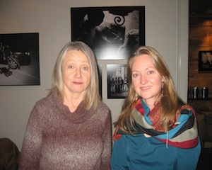 Rachel Louchen reports from West Stockbridge. Six Depot Roastery and Cafe presented a rare opportunity for guests on Friday, January 10 to enjoy a local artist's photographs of tango dancers followed by actually learning how to tango. The line was literally out the door for the opening night of photographer Sabine Vollmer von Falken's new exhibit, A Tango Diary (on display at the Six Depot Gallery until February 16). It seemed nearly the entire town showed up to nosh on hummus, sip wine and enjoy the large black-and-white photos of dancers in various moods and positions. The gallery reception segued into a live tango demonstration and class provided by Tango Pulse. It remains to be seen whether the novice dancers provided some inspiration for a future photo series for Sabine. Above, the photographer with Six Depot Owner Lisa Landry.