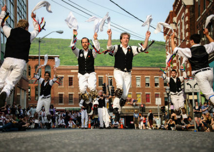 But each team makes the dance their own, and not all are so athletic. Groups wear different costumes or “kits," too, and perform to music from a variety of instruments. Dexter’s team dons black, white and red, with a fresh red rose in the lapel and rainbow ribbons that sparkle when they catch the light. Others wear suspenders, hats or employ colored handkerchiefs in place of ribbons. Almost all wear bells on their shins to accompany the musician playing fiddle, melodian, accordion, pipe and tabor, or other instrument. Many teams employ wooden sticks or swords in their performances. The Suds! has traditionally showcased all-male teams, but all-female and mixed teams do exist. “It’s folk dancing, so it’s meant to be rustic," says Dexter. “A Morris show or ‘stand’ is just really fun; we banter back and forth, speak to the crowd, make up stories about the dances, pass the hat and just talk to people." That sounds like a tradition we can get behind. Saturday, June 11Tour A 10:15 a.m. Canaan, Geer Retirement Community 11:20 a.m. South Egremont Library 2:15 p.m. North Egremont General Store 3:15 p.m. Ashley Falls, near the post office Tour B 10:15 a.m. Paley’s Farm Marketplace, Sharon 11:15 a.m. Salisbury Market Place 2:00 p.m. Sharon, on the Green 3:40 p.m. West Cornwall, near the covered bridge Tour C10:15 a.m. Norfolk, CT, at the library 11:15 a.m. Mill River, MA, near the library 2:00 p.m. New Marlborough, MA, near the meeting house 3:15 p.m. Canaan, CT, Geer Nursing & Rehabilitation Center 6:30 p.m. Grand processional and show in Falls Village, CT by all participating clubs