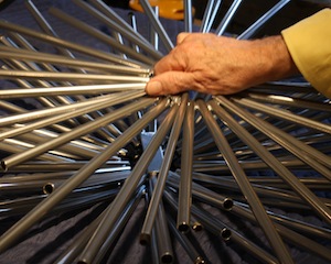 “It’s all space related," Blass says of his current line of pieces, the first of which he made as a Thanksgiving table hanging centerpiece two years ago. “The initial idea was a stylistic throwback, but I quickly adopted a lot of modern design features." It’s undoubtedly this complex interplay that made these works wildly popular almost immediately. Blass and Friday, with the help of two vital assistants, have been building one-of-a-kind pieces for clients across the country and around the world, selling pieces to private and corporate customers in Europe, Hong Kong, and Dubai.