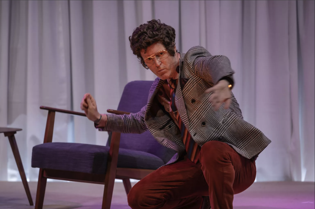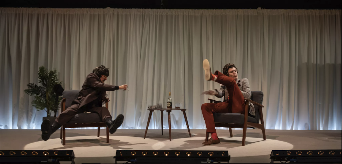 In "Masterclass," Truscott plays a the self-mythologizing male artist and Cannon is a sycophantic interviewer. Photo credit Ste Murray.