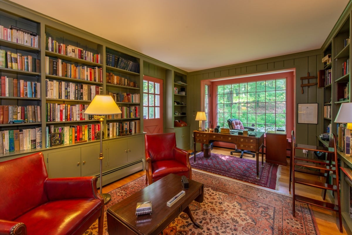 A library/den with built-in bookcases and an alcove are a nod to tradition in this Lakeville home.