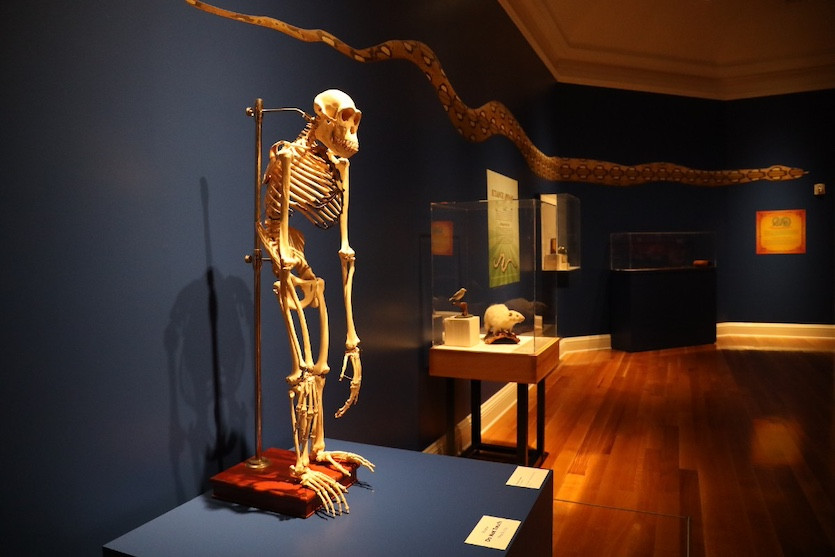Kowalski says he asked the museum’s archivists for their thoughts on the weirdest things in the lesser-exhibited collection, and came up with a circus motif, which seems entirely appropriate —some of the objects resemble things you’d have seen in a circus freak show: a couple of albino taxidermies, a ten-foot-long anaconda skin.