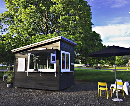 The coffee shops are actually tiny houses built on a trailer and are semi permanent. The 8x12-foot structures, which they put together themselves, are super efficient and meant to be run by one person, but can handle two or three when it’s busy. Since buying land is not part of the dream, the mobile aspect offers the best-case scenario. For the first location, Sapienza drove around Rhinebeck to find somewhere convenient but not in the village. She approached the Rhinebeck Tack owners, who gave her free rein over their sizable parking lot. She wanted it to be a drive-through but Rhinebeck wouldn’t allow it, so it’s a “modified drive-up.”