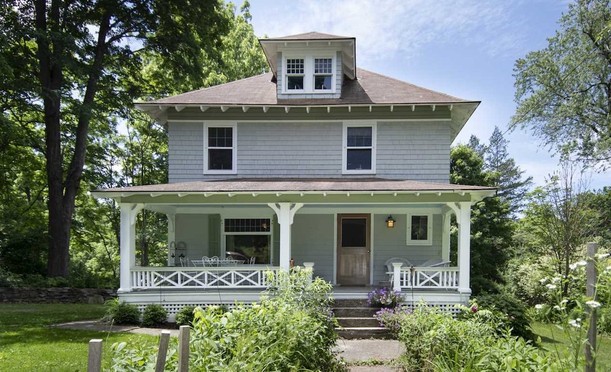An American Foursquare-style home is mixed with Arts And Crafts elements in Amenia.