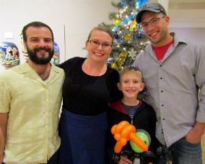 Josh Pisano, Aimee Lescarbeau-Knysh, Harry Potter and Chris Knysh; Bowey the Clown twists up a good time.
