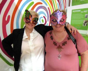 Cindy Perrea, of exhibit sponsor Pittsfield Cooperative Bank, with Sandi Sakowski; Stockbridge Library director Katherine O'Neil and her son Leo.