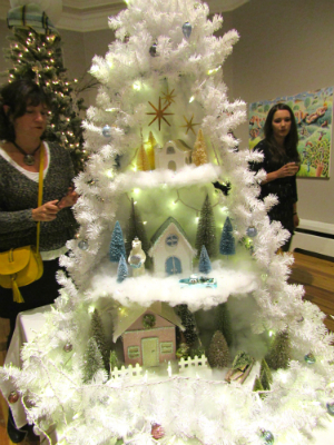 Amy Krzanik reports from Pittsfield. Whether you’re 5 years old or 85 years young, Berkshire Museum’s annual Festival of Trees exhibition elicits true holiday joy in all who experience it. This year’s show, entitled Whimsical, Wonderful Festival of Trees, opened with its signature reception on Friday, Nov. 17. Guests enjoyed oodles of noodles and other snacks from Chef Laura Shack of Firefly in Lenox, surreal live music from Hudson, New York’s C. Ryder Cooley, signature cocktails, colorful masks and balloon creations from Bowey the Clown. Tree sponsors were asked to conceal an item in their creations so guests can search them out in a game inspired by the I-SPY books. Criterion hid an orange eyeball, Canyon Ranch hid dragon eggs, Cross Insurance hid sleepy dust, and exhibit sponsor Hill Engineers hid Tinkerbell. This year’s Festival of Trees will be up until Jan. 7, 2018.