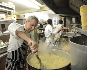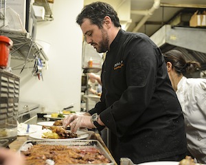 Josh Kroner in his kitchen at Terrapin; Gianni Scappin cooking squash and kale risotto from local Hudson Valley Farms.