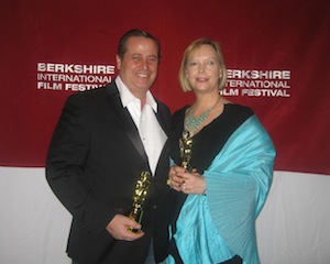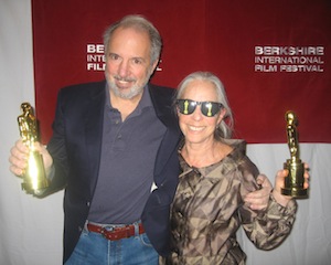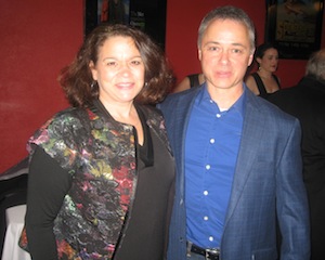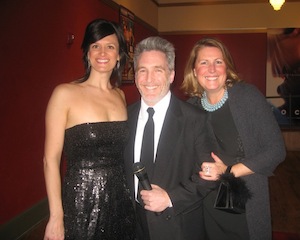 Rachel Louchen reports from Pittsfield. Berkshire residents were offered the red carpet treatment, not unlike the celebrities at the Dolby Theater, when the Berkshire International Film Festival (BIFF) hosted an Academy Awards party at the Beacon Cinema on Sunday, February 22. Guests dressed to impress on the red carpet, stopped to pose for professional photos and then enjoyed the live telecast on the big screen from the theater's very comfortable seats. They also had the opportunity to fill out ballots predicting the evening's big winners for a chance at a gift basket (they were divided between Birdman and Boyhood for Best Picture). The party was the final event of Pittsfield's 10x10 Upstreet Arts Festival, a 10-day event featuring a diverse mix of live performances, the visual arts, dance, theater, film, fashion and more. It also helped whet the appetite for film lovers until the BIFF festival returns for its 10th year this May. Above, BIFF Executive Assistant Lauren Ferin with Mark Tomasi, Creative Manager at Berkshire Bank and Kelley Vickery, Director of BIFF.