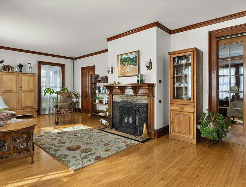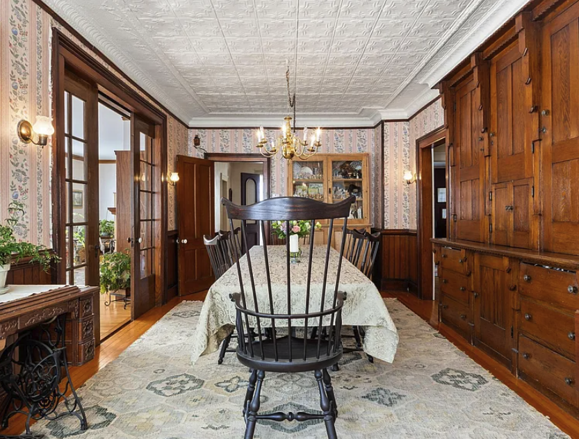 Upon entering, you're greeted by soaring high ceilings that enhance the home's spacious feel. The living areas are adorned with preserved details that reflect the home's rich history, while large windows invite ample natural light, creating a warm and inviting atmosphere.