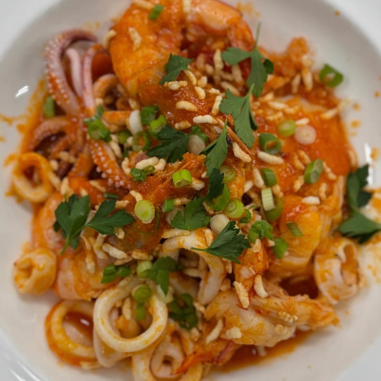 The draw after skiing is the chicken: brined, entirely gluten-free, and fried to an audibly crunchy finish before being glossed with a hot honey sambal. Order it as a plate with potato salad and slaw, or tucked into a biscuit (not GF) with house pickles.