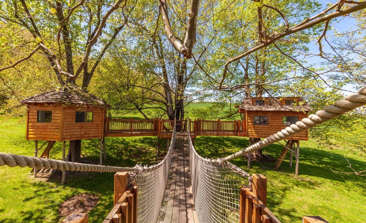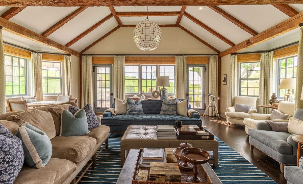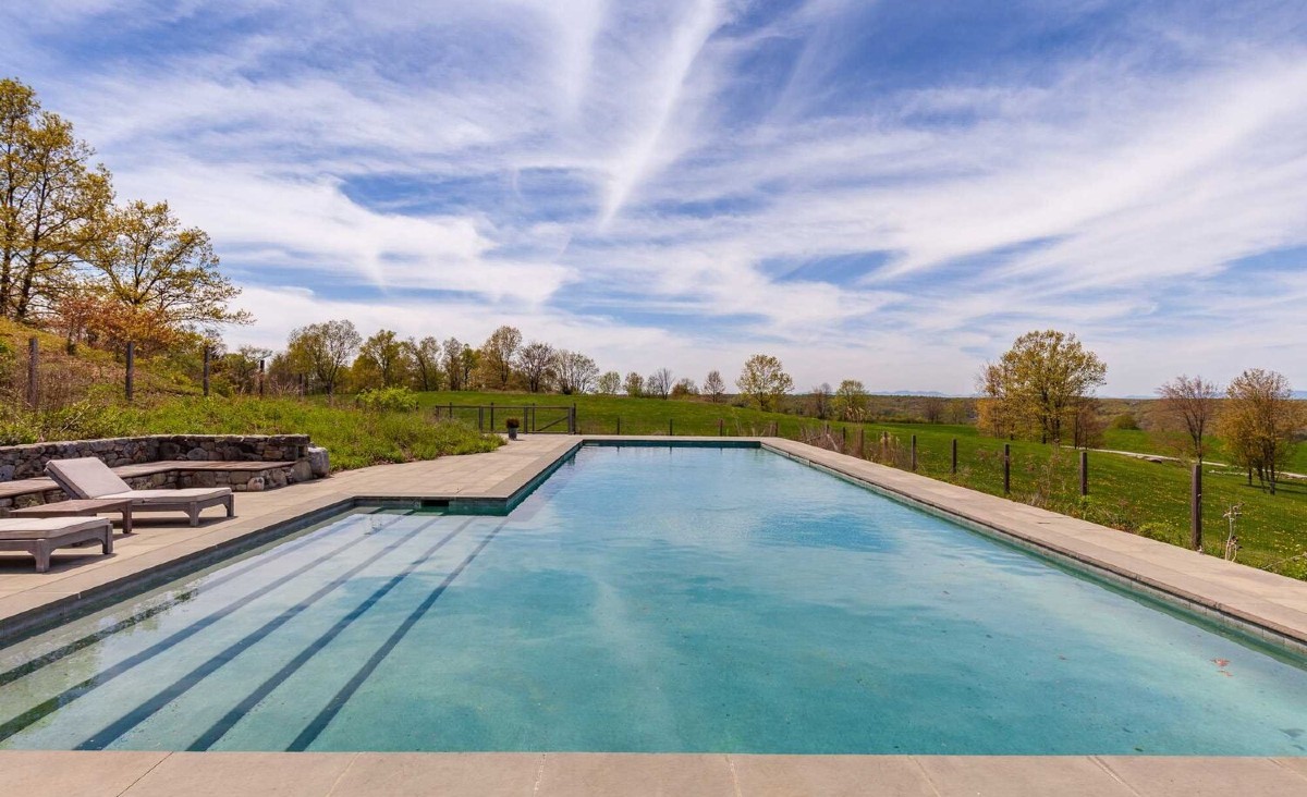Located on 283 acres with a private lake in Millbrook, the main house has four bedrooms and four bathrooms. Additionally, there is a three-bedroom guest house, two treehouses, a carriage house with a gym and three-car garage, and an eight-stall stable with an indoor arena. Outside, there are fenced paddocks, tennis court and swimming pool with a wood pavilion, an organic vegetable garden and machine barn with farm office and apartment. Listed at $9,950,000 by Heather Croner Real Estate Sotheby's International Realty.