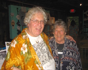 Rachel Louchen reports from Pittsfield. A little rain (okay, a lot) couldn't keep a good luau down on Saturday, September 12 at the Berkshire Historical Society at Herman Melville’s Arrowhead. A major fundraiser for Arrowhead, the party's theme was inspired by Melville's time in the South Pacific, and included a pig roast, live music and Hawaiian leis. As the rain came down, the activities were transferred indoors to the big barn behind the main house, and a close-knit group of longtime supporters, historians and even a Melville relative enjoyed a delicious authentic spread accompanied by the music from locals Chris and Woody. At left, event coordinator and director of communications and community relations Peter Bergman with Sudy Belle.